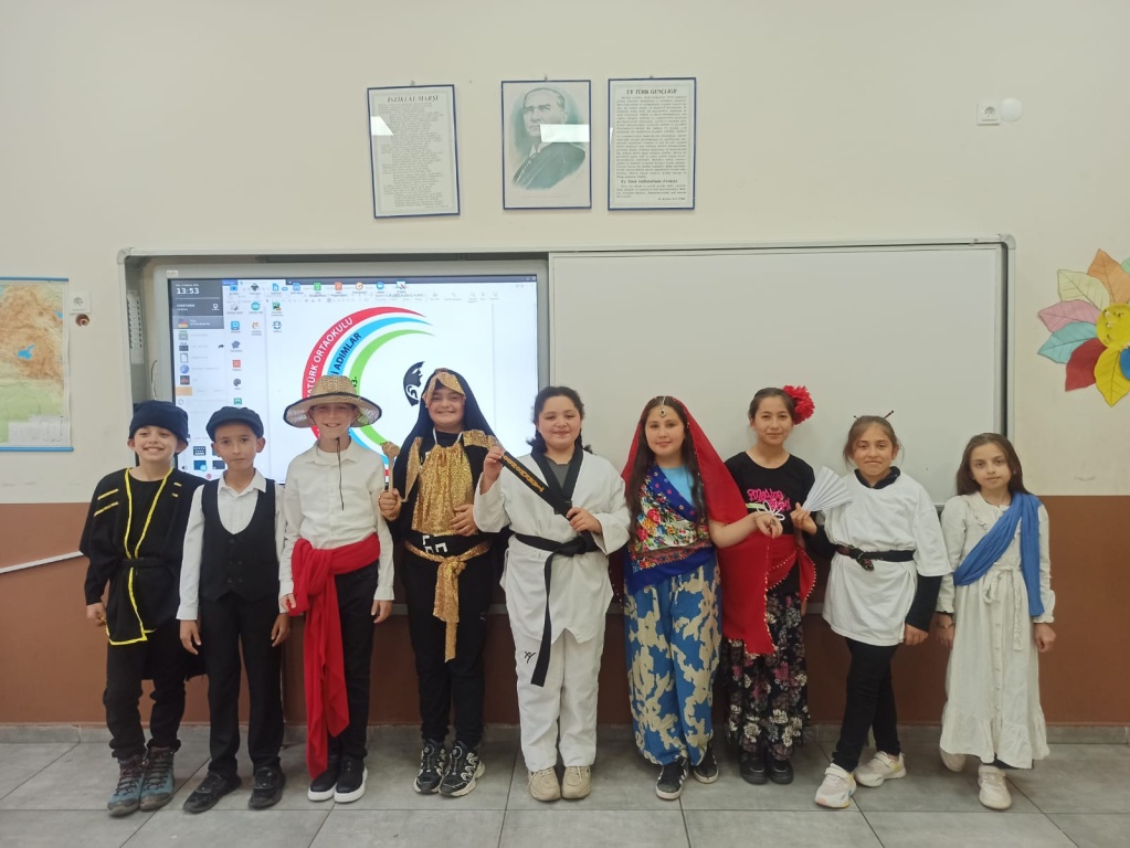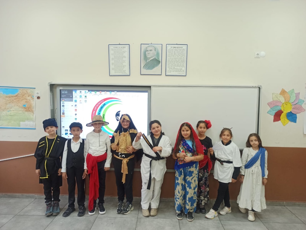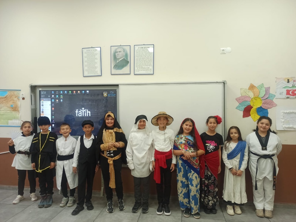 4/B sınıfı, Sosyal Bilgiler dersi "Dünya Ailesi" ünitesi kapsamında "Farklı Ülkeleri Tanıyorum" etkinliğini kostümlerle gerçekleştirdi.